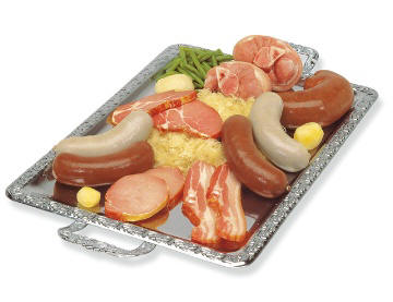 Vom Braten, panierte Schnitzel, Blut- und Leberwürste bis hin zum Gnagi alles mit diversen Beilagen.
